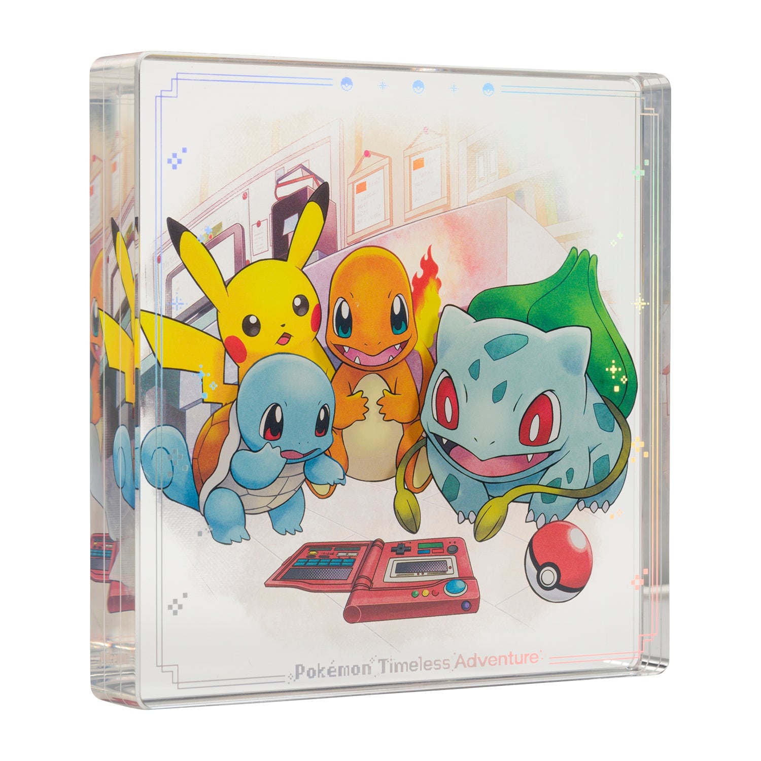 It is an acrylic block of the Pokémon 30th anniversary illustration "Pokémon Timeless Adventure" series.