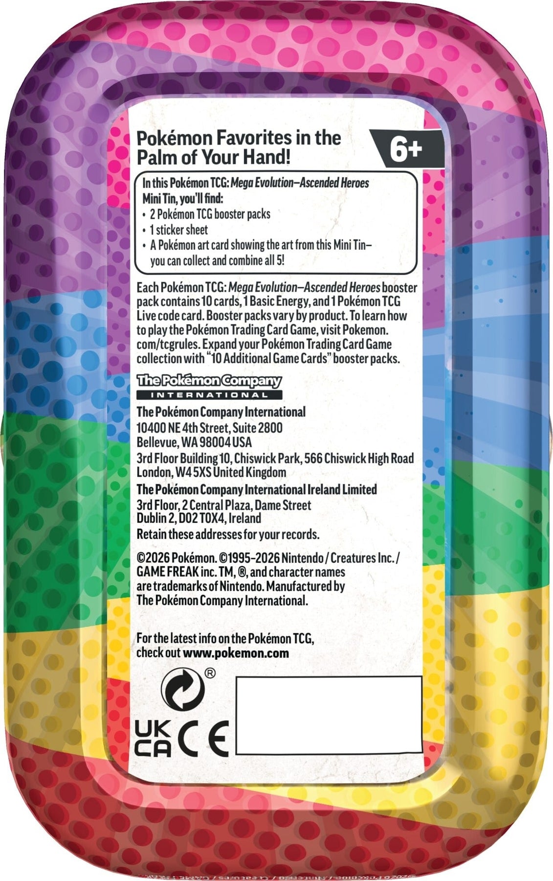 In each Pokémon TCG: Mega Evolution—Ascended Heroes Mini Tin, you’ll find: