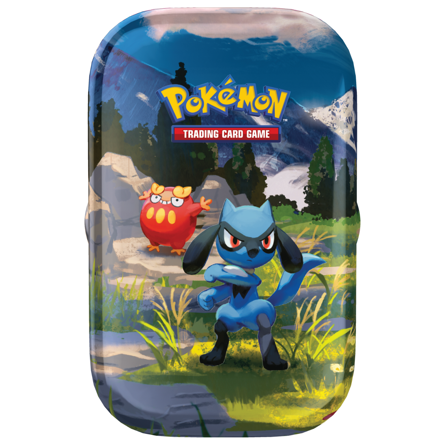 A Pokémon art card showing the art from this Mini Tin—you can collect and combine all 5!